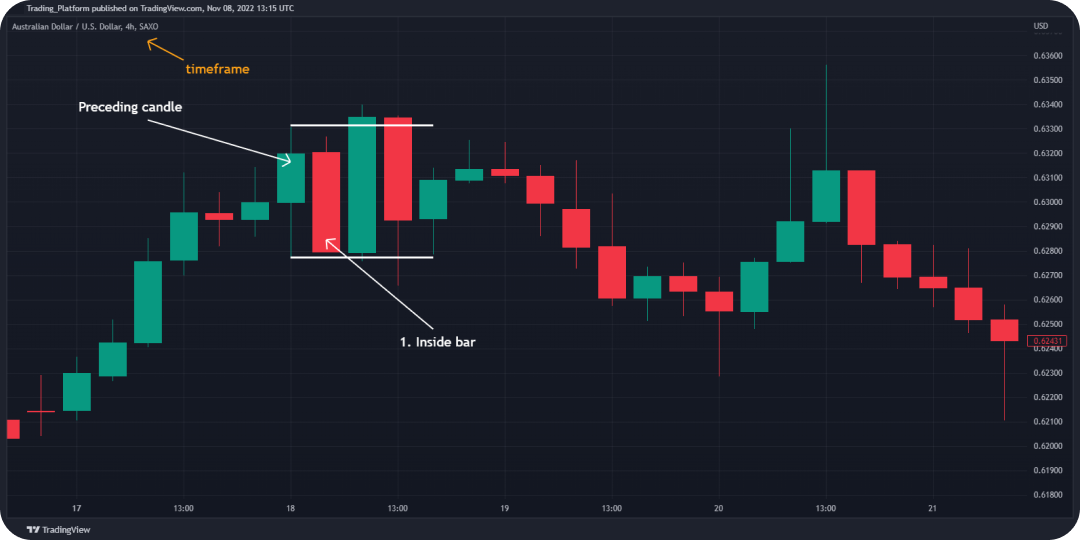 - H4图表的内柱(价格行为模式:在之前烛台范围内关闭的蜡烛)